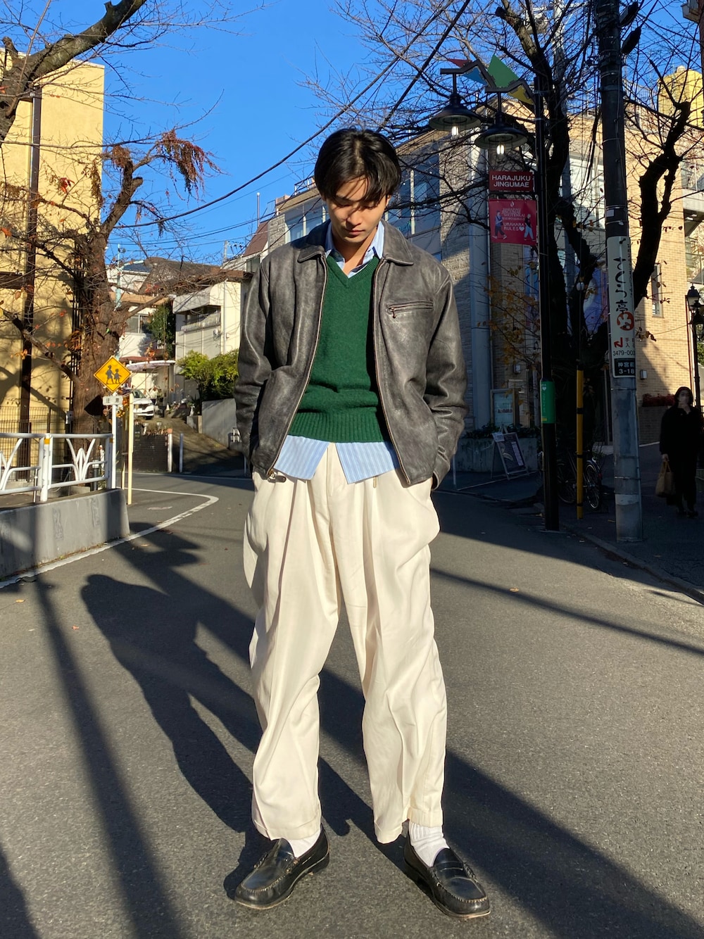 綺麗めのインナー、パンツにレザーで外してシティーボーイ感を出してみました✌︎ 色の合わせ気に入ってます! スライドすると寄りなどの写真も見れます!