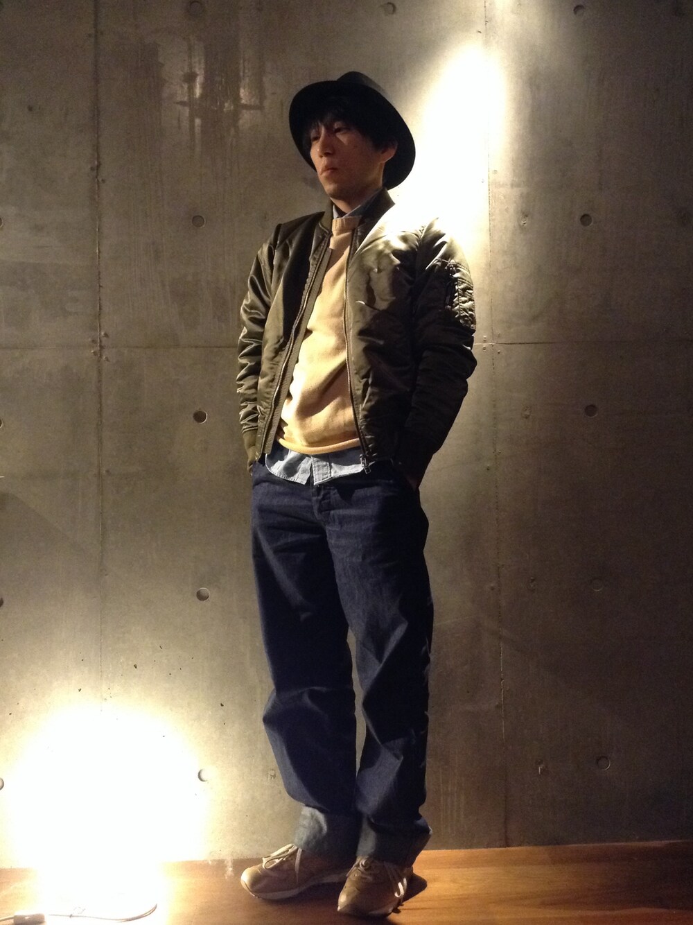 ミヤウチタカシのミリタリージャケット「JB: ナイロン ツイルMA-1 ジャケット 15SS」を使ったコーディネート