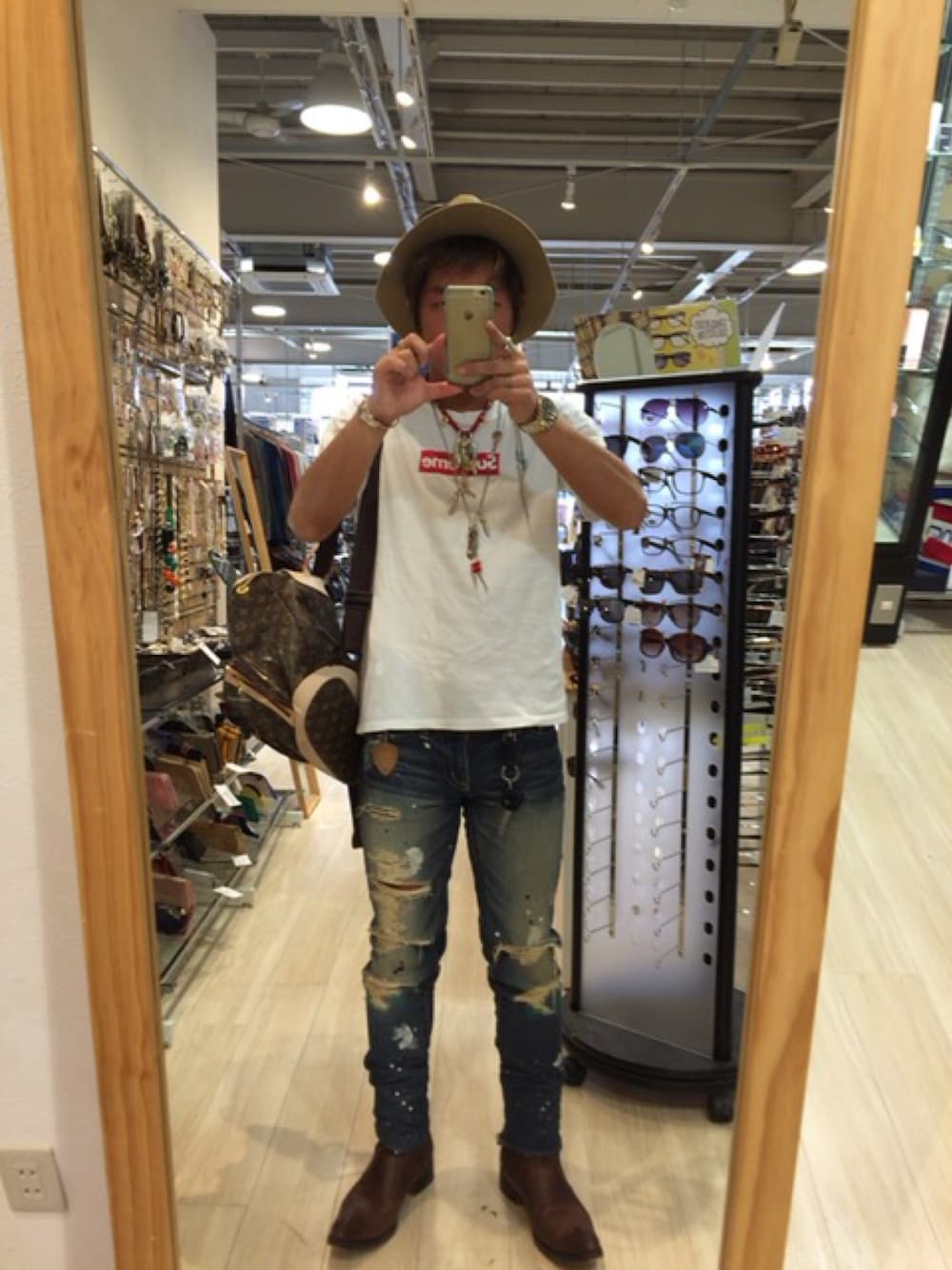 夏日はやぱシンプルにコーデしちゃいます^_^ ヴァンキッシュのパンツはブーツカットをスキニー風にリメイク 夜もこのままいきます笑
