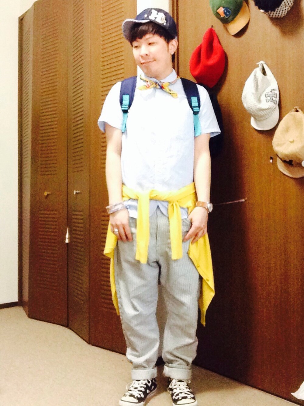 今日のたかやん☆ 青コーデでバンダナやカーディガンに色入れたよ〜!!