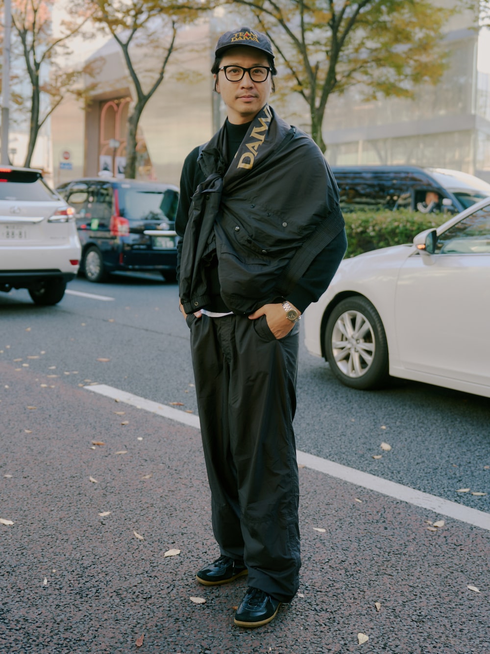 オールドDaiwaはTEAM Daiwaでブルゾンとパンツとキャップの3点セット。 非常に動きやすい。 ブルゾンを変則的な肩掛けでアクセント。
