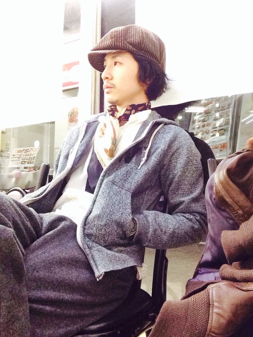 ホカ弁仕様。 スウェットはついつい子供っぽくなる時がある。 キャスとスカーフ、色使いをモノトーンにして大人ぶる。 アイテム全て古着。
