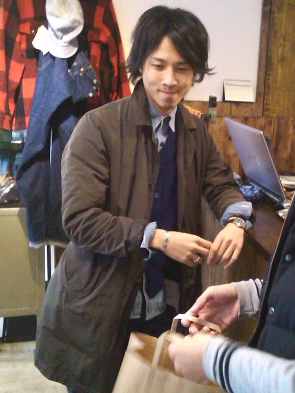 コットニーにて。 コート:アスペジ シャツ:古着 ニット:古着 バングル:40'sナバホ