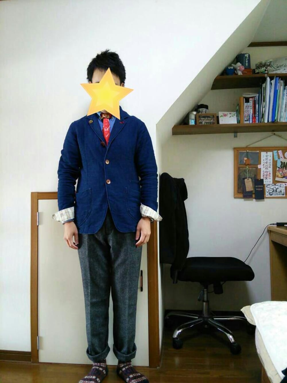 結婚式の二次会コーデ シャツ、ジャケット、バンダナスカーフ、スカーフリングはanachronorm パンツはユニクロ