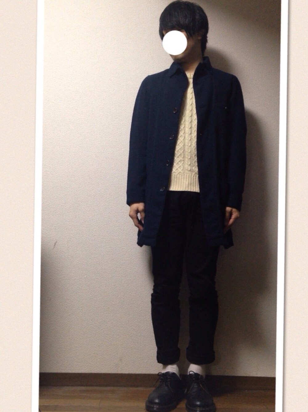 ネイビーのショップコートコーデ♪ 白、ネイビー、黒の3色。