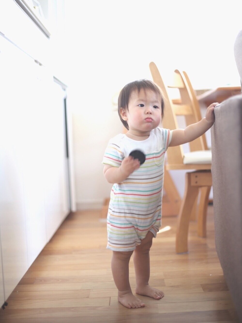 去年のロンパース着れた😂 3-6monthのサイズなのに😅 もう1歳すぎてるのにー😳 小柄のなせる技😏 ちょいパツパツなんがまた萌えるーー💕💕 去年との変化…毛量が増えて首ができましたね。