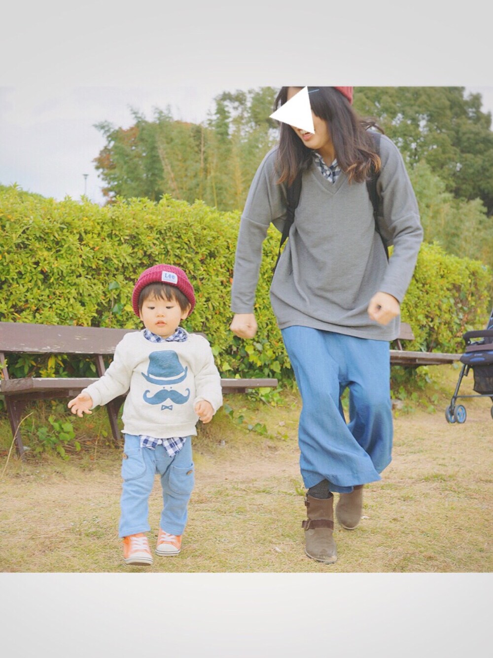 今日はコスモス畑を見にコスモスの丘へ❤️ …と思ったら刈り取られておりました。 インスタ見てたら2日前まではコスモス畑アップしてる人がいたのにー‼️😫 ショック〜😨 コスモスは無かったのでただの丘で小一時間遊びましたとさ。 一応赤ニット帽とネイビーチェックシャツとデニムのリンクコーデ❤️