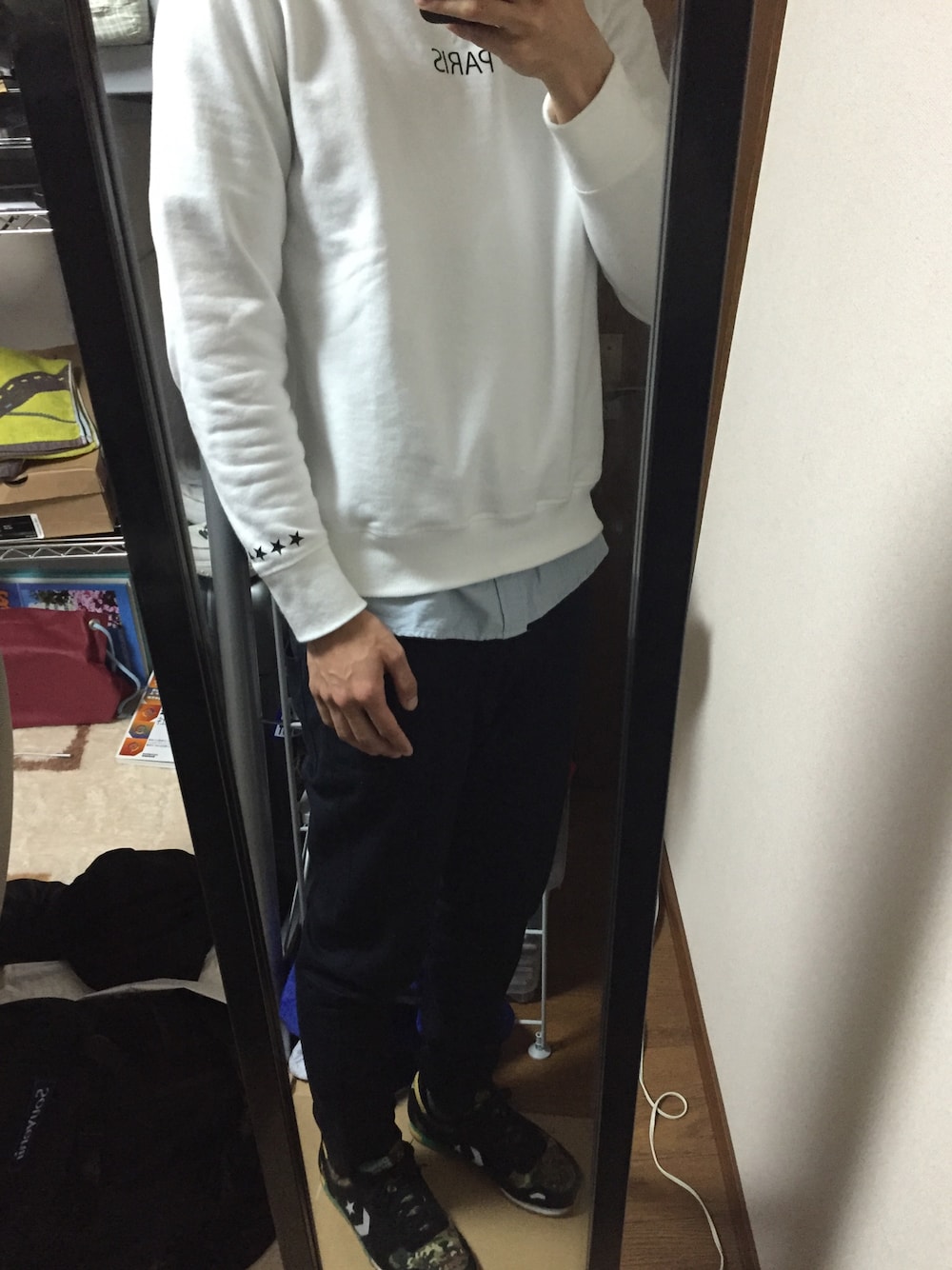 白のスウェットがセールだったので、思い切って購入。 最近コレしか履いてない、紺のスキニー。先日色違いの黒色を注文、ホントこれ良い