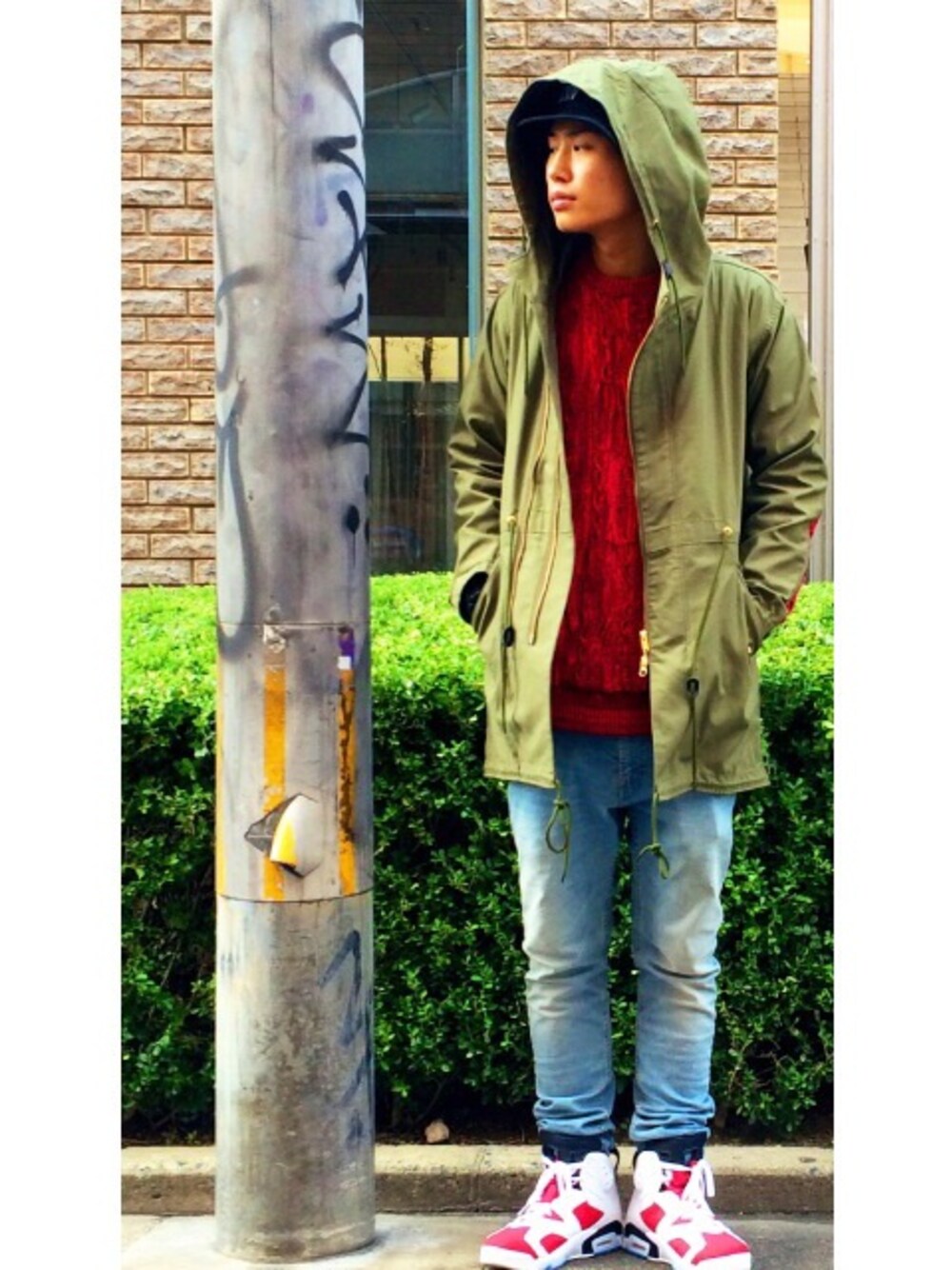 最近流行りのモッズコート。 赤が大好きなので赤でまとめました!