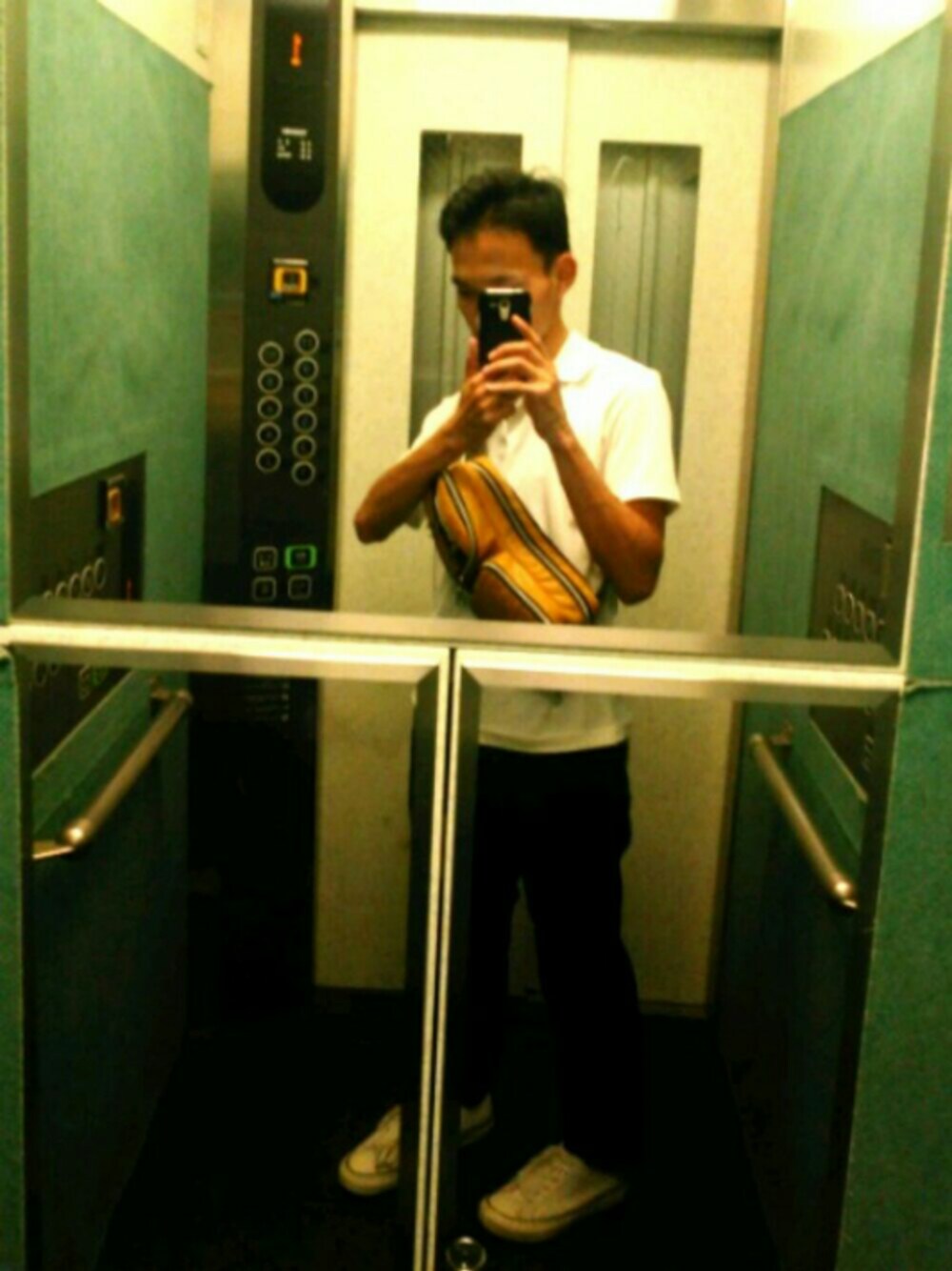 初投稿です。 見ていただきありがとうございます。 【今日のコーディネート】 秋なのに今日は30度ということで半袖です。 ポロシャツとスラックスでかなりビジネスカジュアルに近いのでスニーカーとボディーバックで中和しました。 全体をモノトーンにしたのでバックの黄色が差し色となってます。 ○写真を撮る場所がなくエレベーターの中です。ちゃんとしたところ探します。 近頃は気温の変化が激しいので体調を崩されないよう… いいね、フォローよろしくお願いいたします。 ではばいばい(*・ω・)ノ