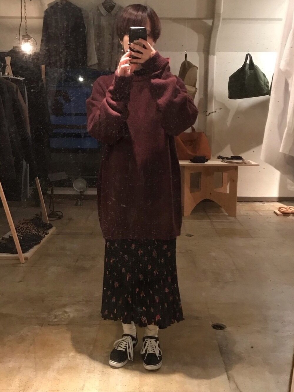 メンズサイズのニットとスカートが相性抜群⭕️