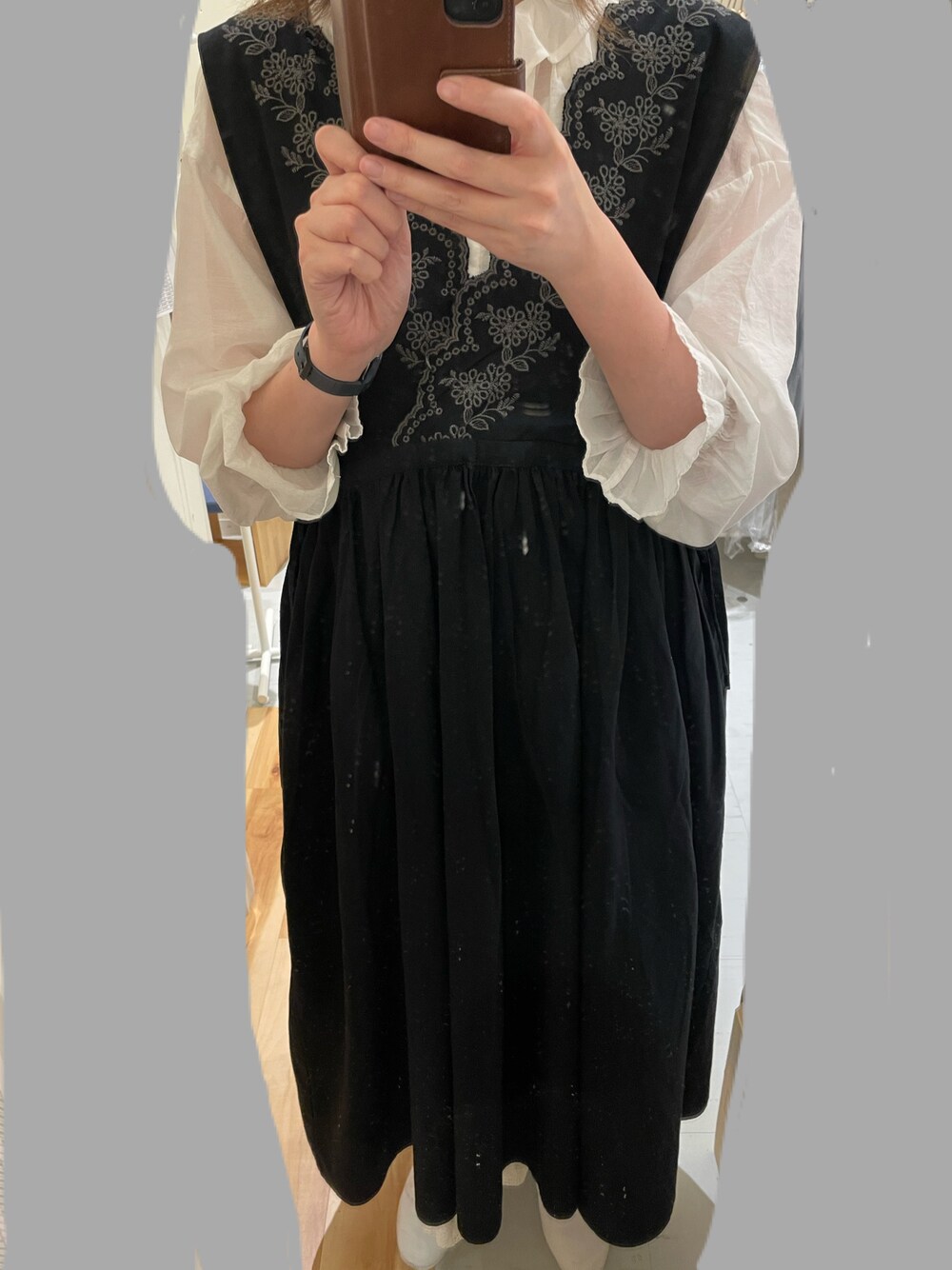 こんにちは! 昨日の出勤コーディネートをご紹介します👗 オンラインでも人気ランキング上位の綿麻スカラップノースリワンピースに私自身もトキメキ、黒を購入致しました◎ そちらに、こちらも人気のシアーフリル襟ブラウスの白を合わせ、可愛いながらにシックで大人っぽいコーディネートに仕上げました!! 甘めすぎるのが苦手な方でも、合わせ方や合わせるアイテム1つで雰囲気が大きく変わるかと思いますので、年齢関係なく、レースor刺繍アイテムを取り入れて頂きたいです🐻 その他にもおすすめアイテムが沢山入荷しておりますので、お近くにいらした際は是非お立ち寄りくださいませ🙇