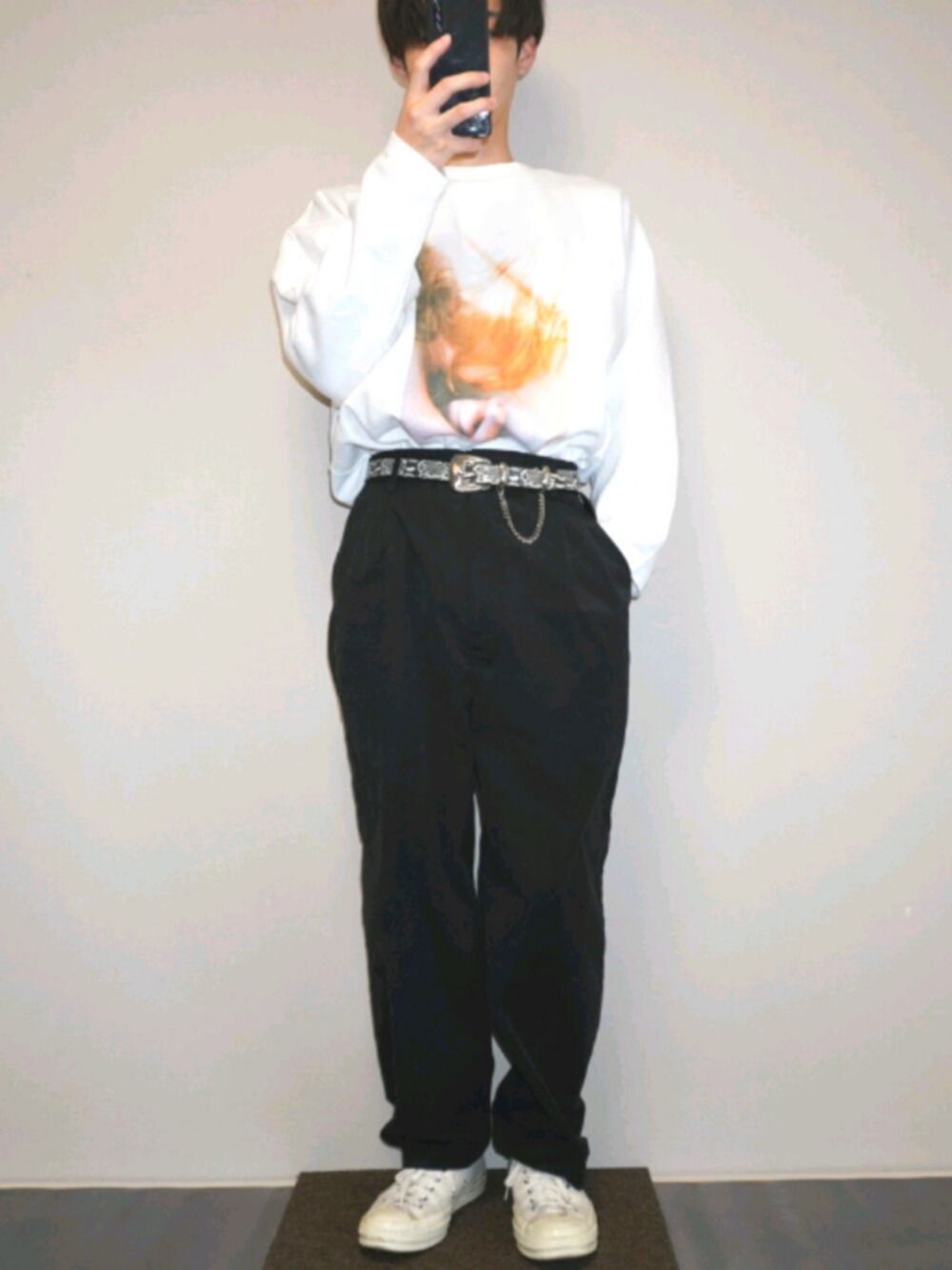 久しぶりでございます✋ パンツのシルエットがとてもいいのでタックインです!! 最近converseのヴィンテージを集め始めました