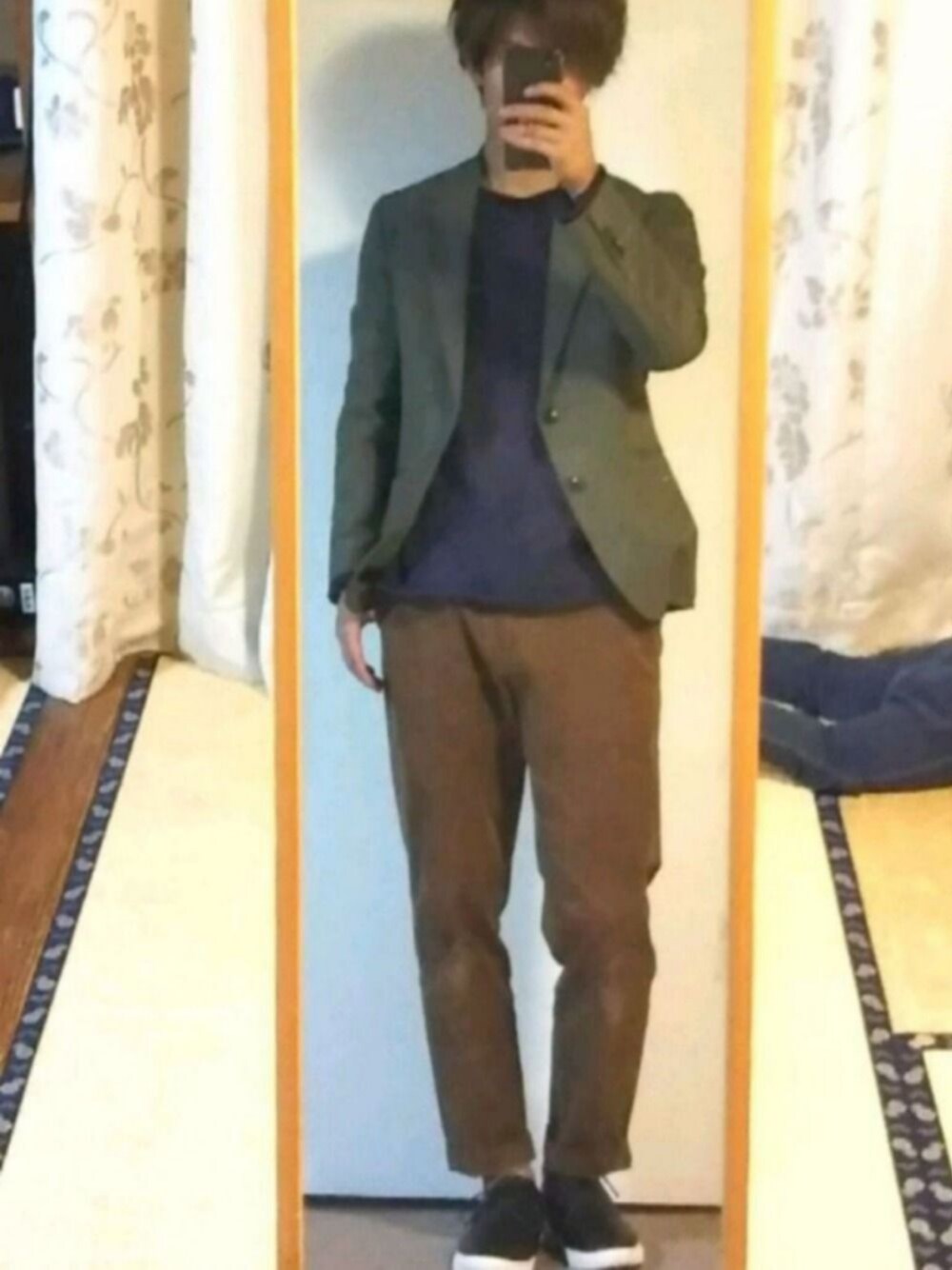 きれい目に寄りがちなテーラードには、コーデュロイの素材感とブラウン味でカジュアルに。 寒いから、色味だけでも暖かそうに、、!
