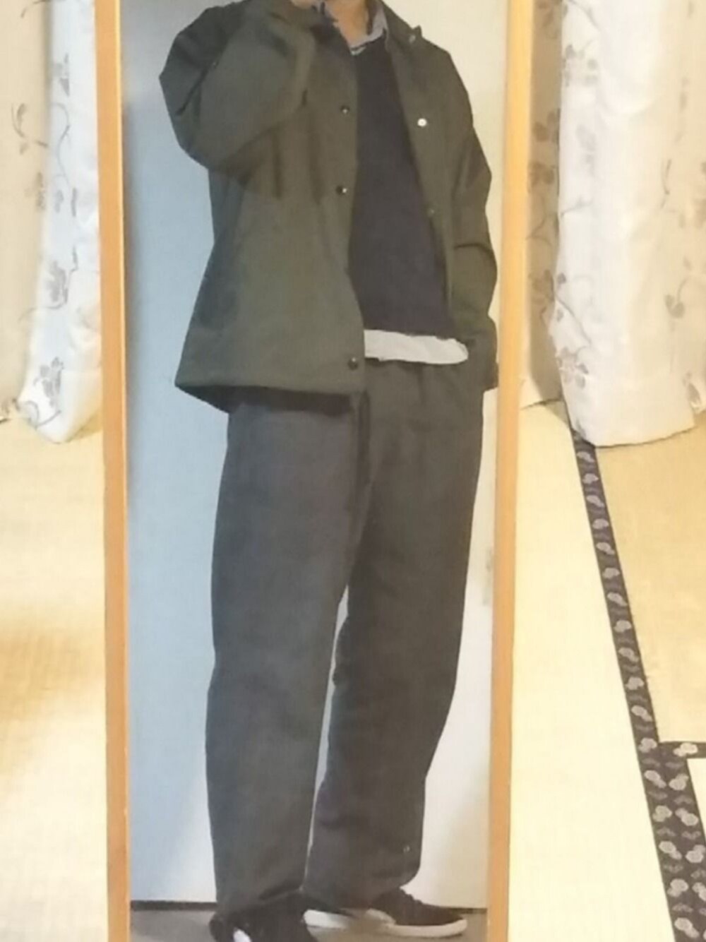 コーチジャケット、格好いいなあ。 写真だとわかりづらいけど、チェックのパンツと合わせて。 足元はジャケットのスポーティな雰囲気を拾って、プーマのスニーカー!