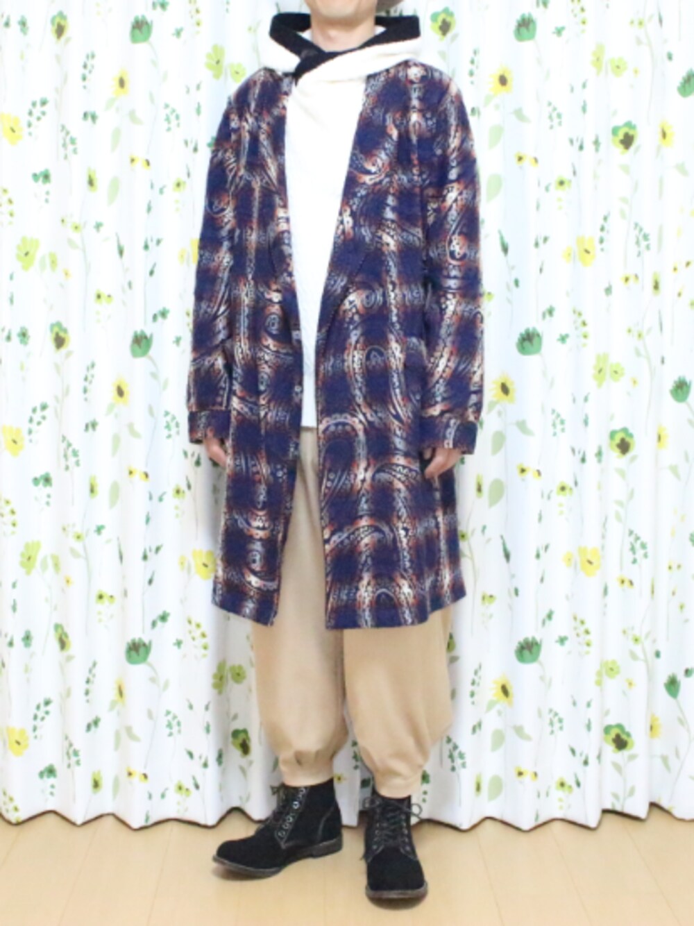 1/16(火) 最高気温 13℃ 最低気温 1℃ 天候:晴れ 今日は風も弱く、驚くほど暖かい日。 ニットパーカーにガウンを羽織ったくらいでちょうどよかった。 taakkのガウンは、ハンギングの状態では派手だったが、着てみると意外と使いやすい逸品。 3シーズン使えることから、これからガウンやロングカーディガンを購入しようも思えたガウンです。