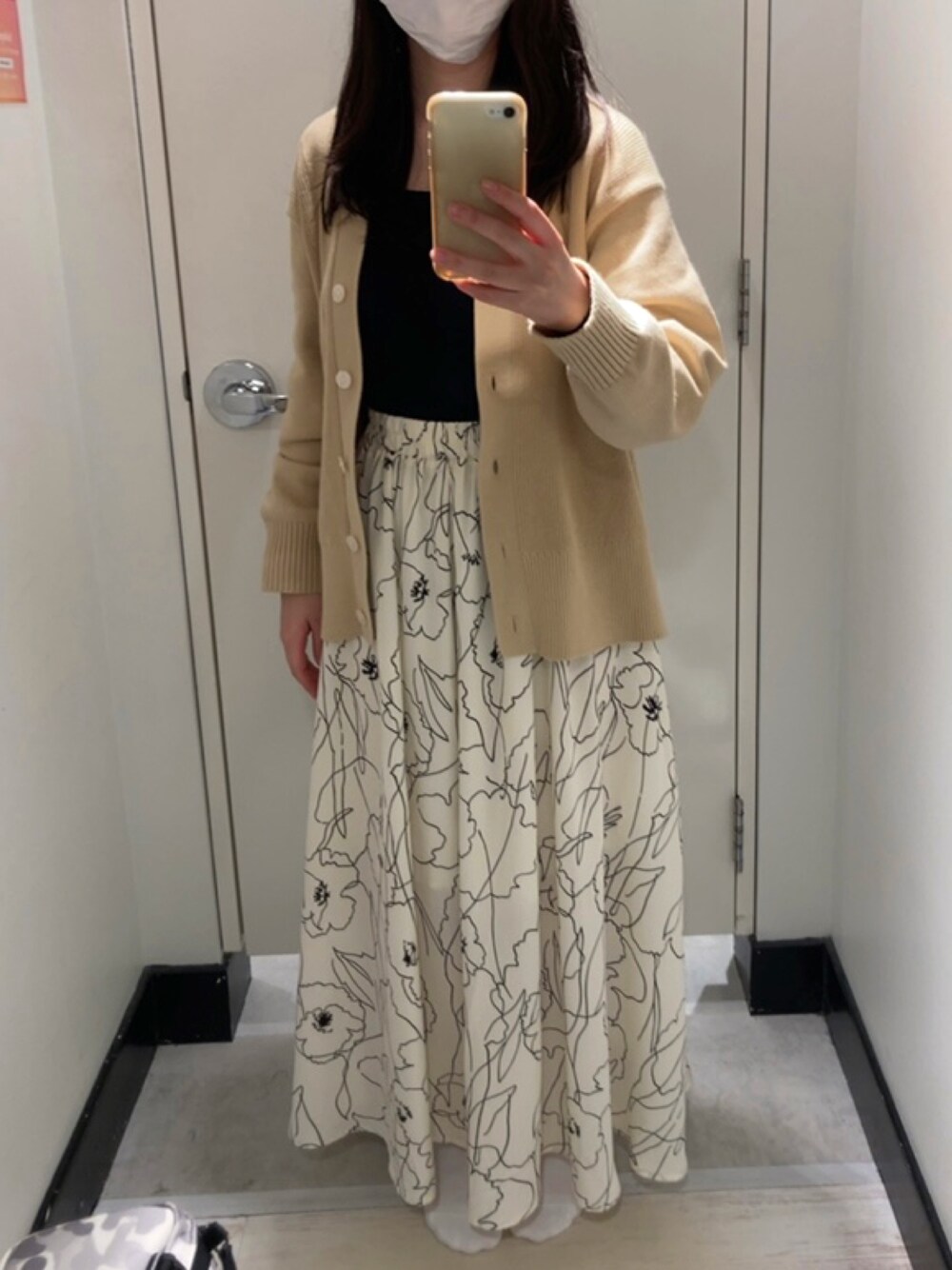 マスタードイエローで差し色🟡 夏にヘビロテしそうな軽やかスカートでした。cocaのボトムは私には丈が長めだけど、これはピッタリ。