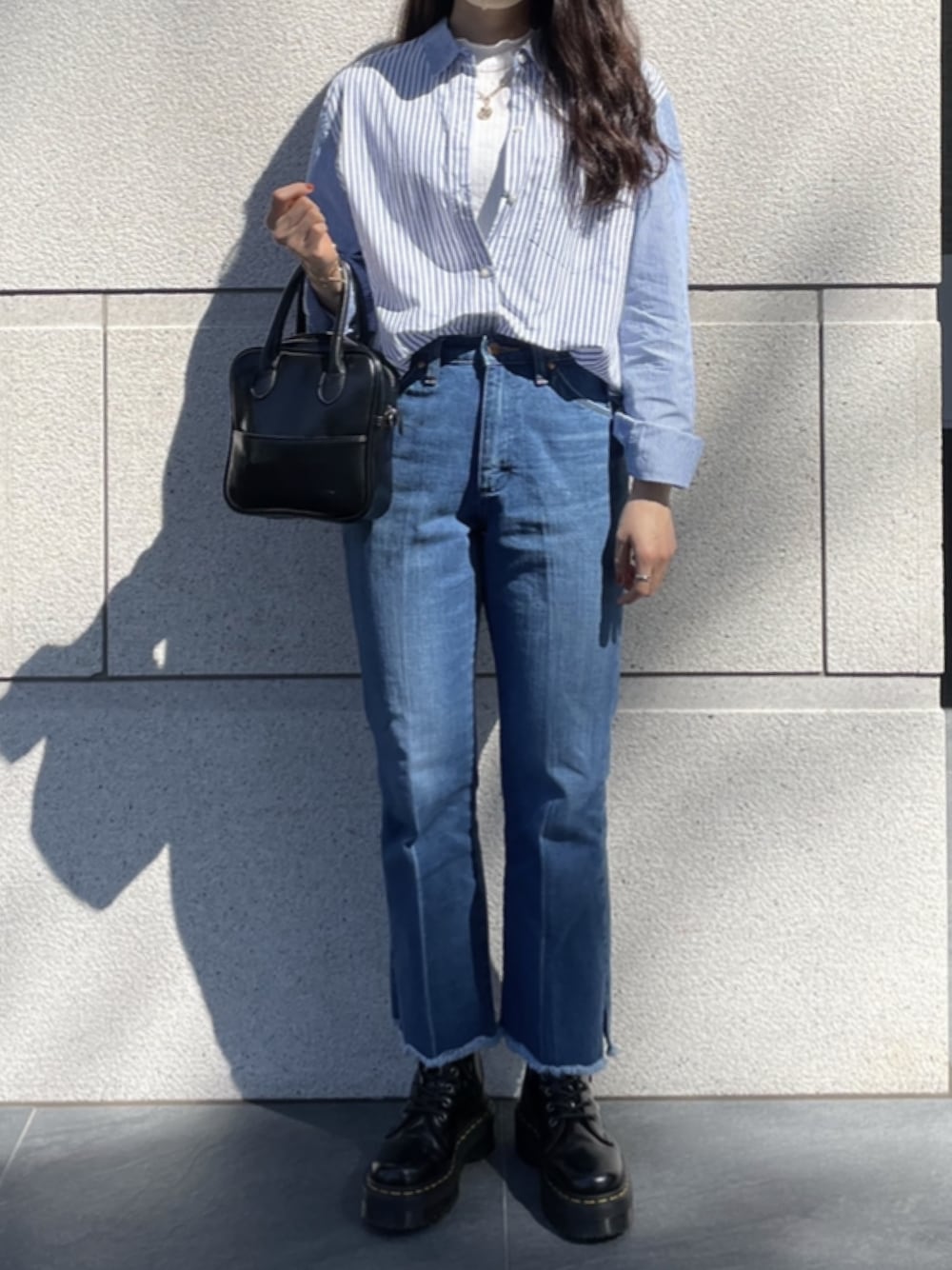 himeko のデニムパンツ「Wrangler × FREAK'S STORE/ラングラー 別注FLARE DENIM PANTS/別注フレアデニムパンツ」を使ったコーディネート