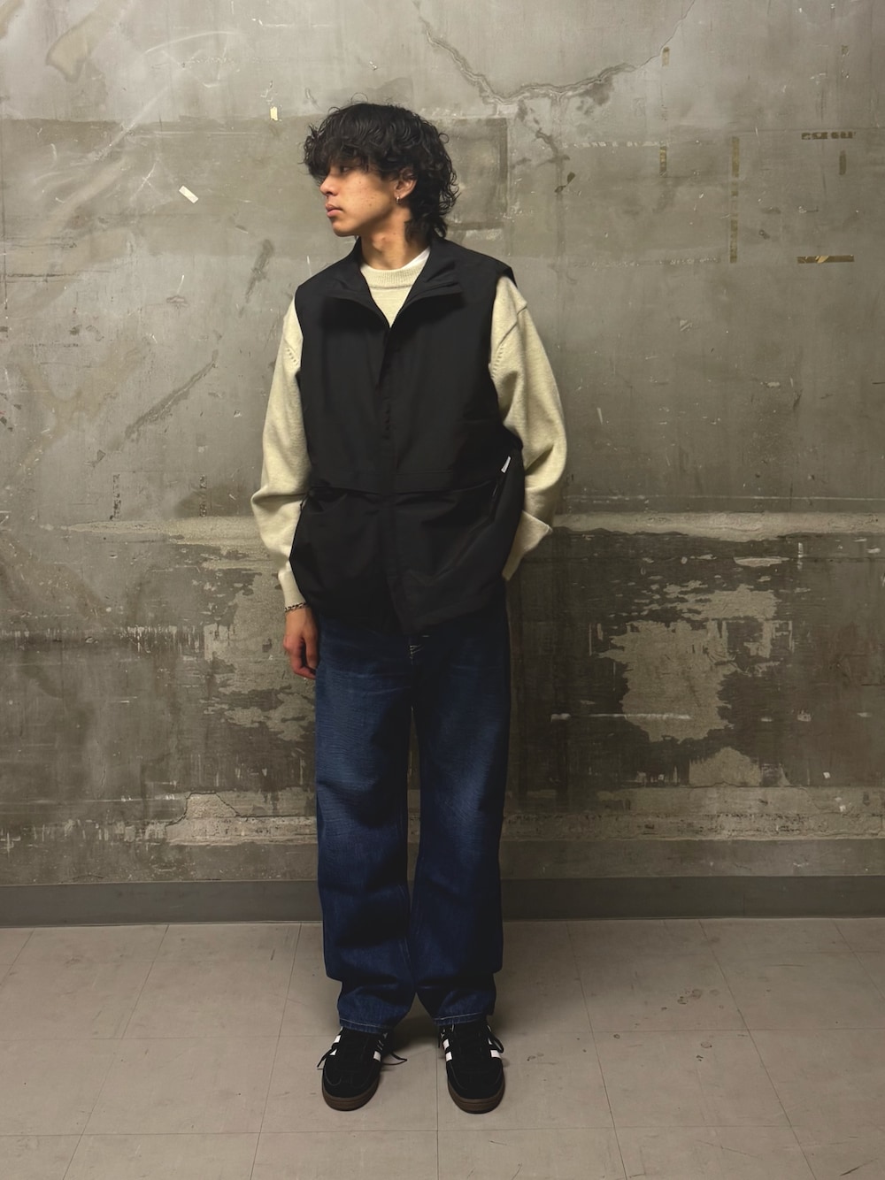 いつもご覧いただきありがとうございます!ボリュームのあるワイドパンツに対し、ベストで上半身をコンパクトに引き締めることで、スタイルが良く見えるようにしてみました!