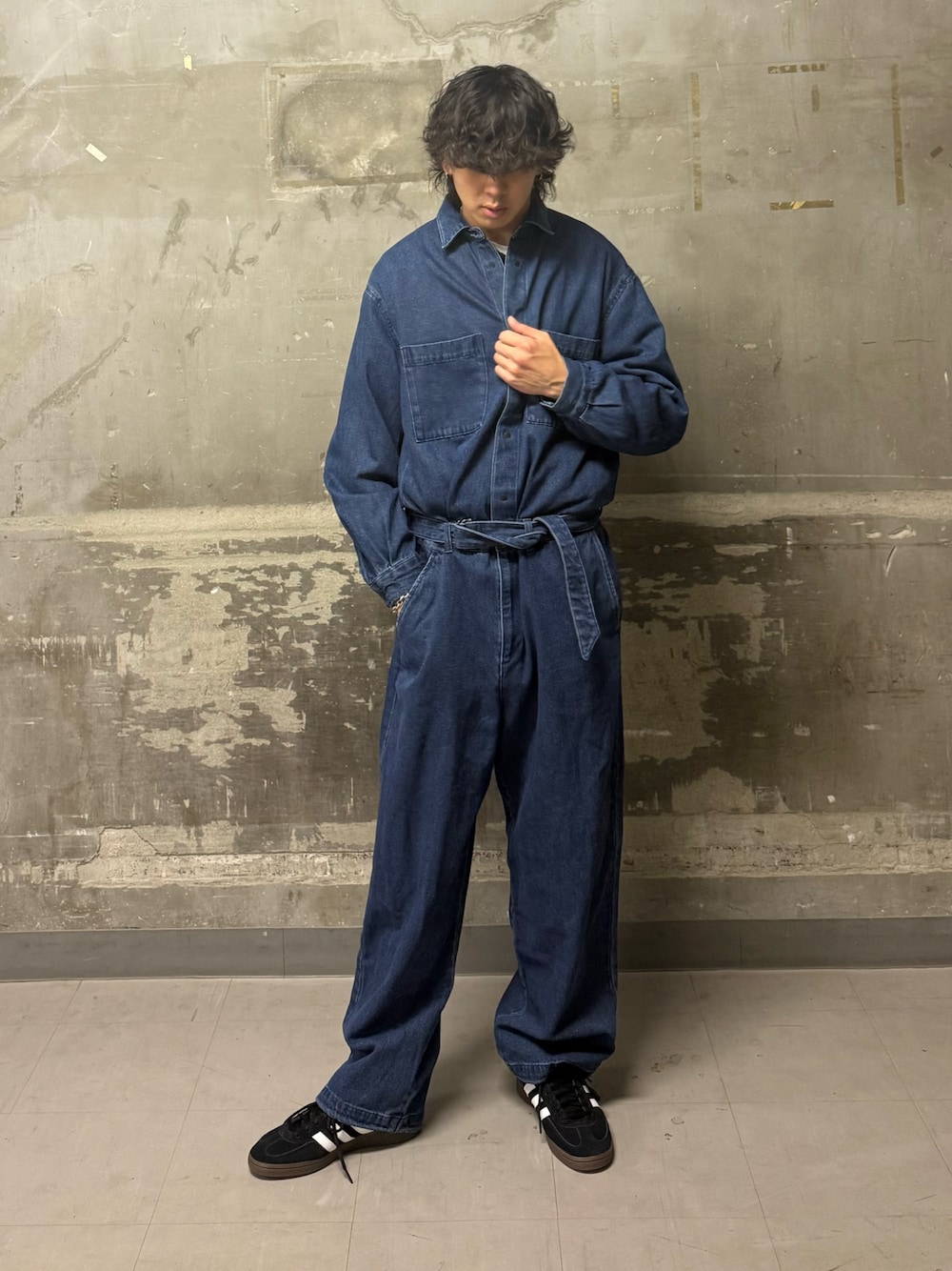 いつもご覧いただきありがとうございます!上下を深いインディゴブルーのデニムで統一されているジャンプスーツで無骨なワーク感を出しつつ、現代的なシルエットに落とし込んでみました!