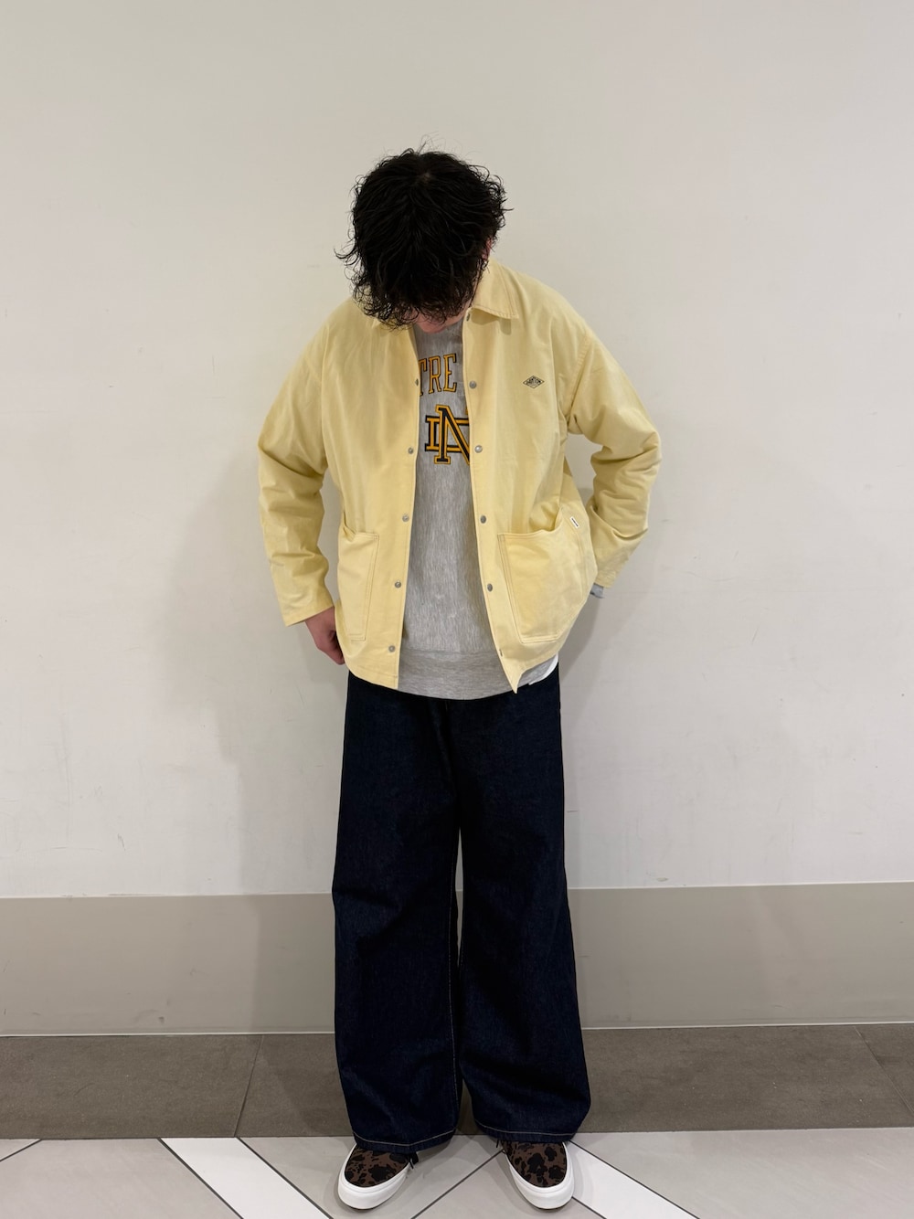 いつもご覧いただきありがとうございます!今回はダントンのレモンイエローのカバーオールと別注leeのワイドデニムを使って春コーデを組んでみました!