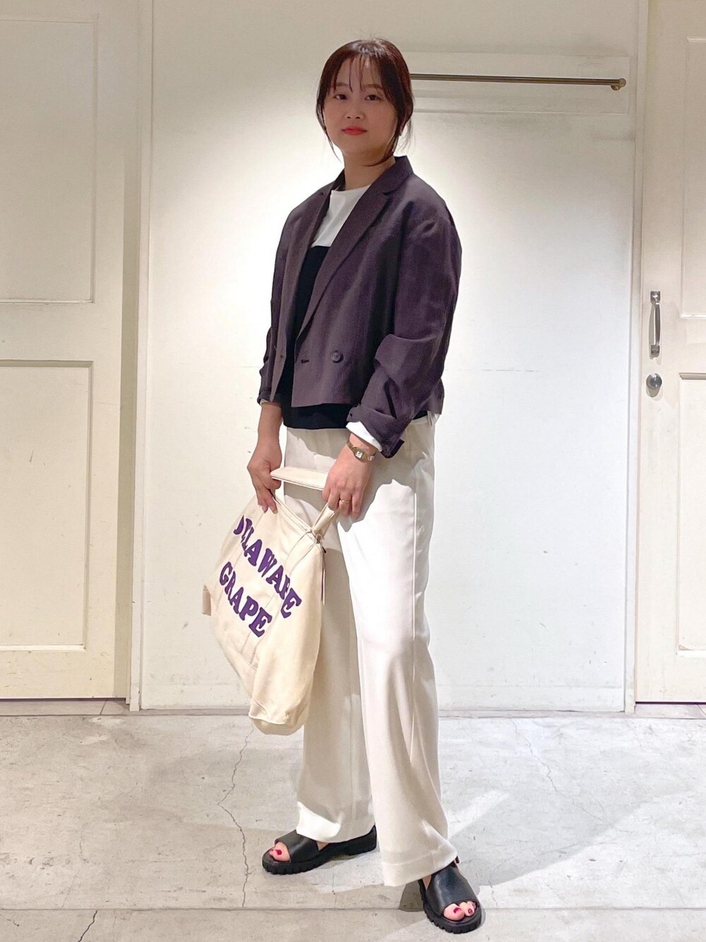 こんにちは♪ 今回は新作のクロップドジャケットを着てみました! 前回着用のオールインワンとセットアップ対応です◎ イージーリラックスパンツ×パフスリーブTシャツで合わせてみました⭐︎ サラッと羽織るだけで雰囲気がでますね。 是非店頭でもご覧下さいませ♪ 合わせたBAG詳細 問い合わせ番号:SBX54080 #54 サイズ:フリー Price¥9.000+tax その他:スタッフ私物