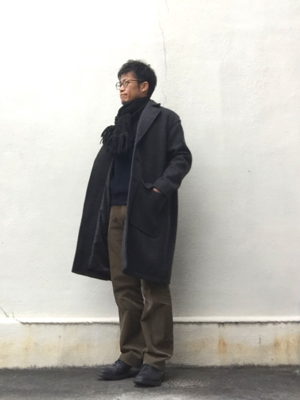 takeのチェスターコート「エアーメルトンオーバーコート」を使ったコーディネート