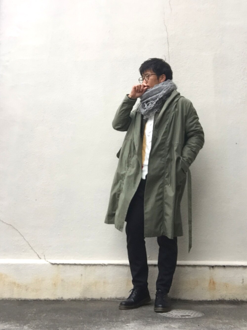 takeのモッズコート「rehacer : Over Hooded Military Coat MADE IN OKAYAMA JAPAN」を使ったコーディネート