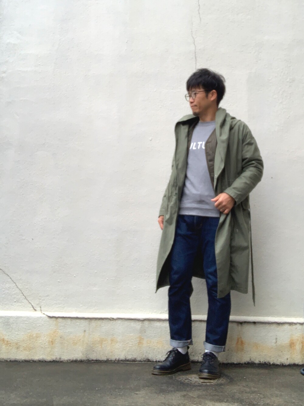 takeのモッズコート「rehacer : Over Hooded Military Coat MADE IN OKAYAMA JAPAN」を使ったコーディネート
