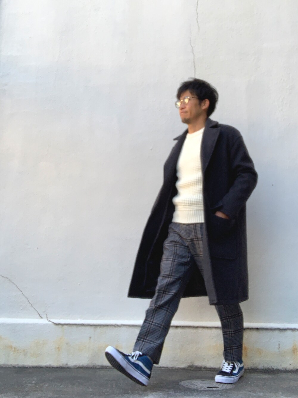 takeのチェスターコート「エアーメルトンオーバーコート」を使ったコーディネート