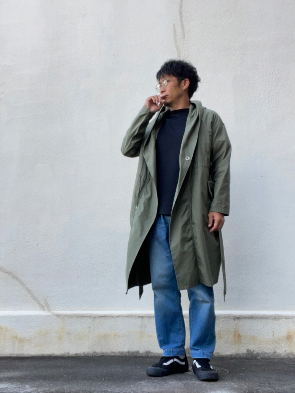 takeのモッズコート「rehacer : Over Hooded Military Coat MADE IN OKAYAMA JAPAN」を使ったコーディネート