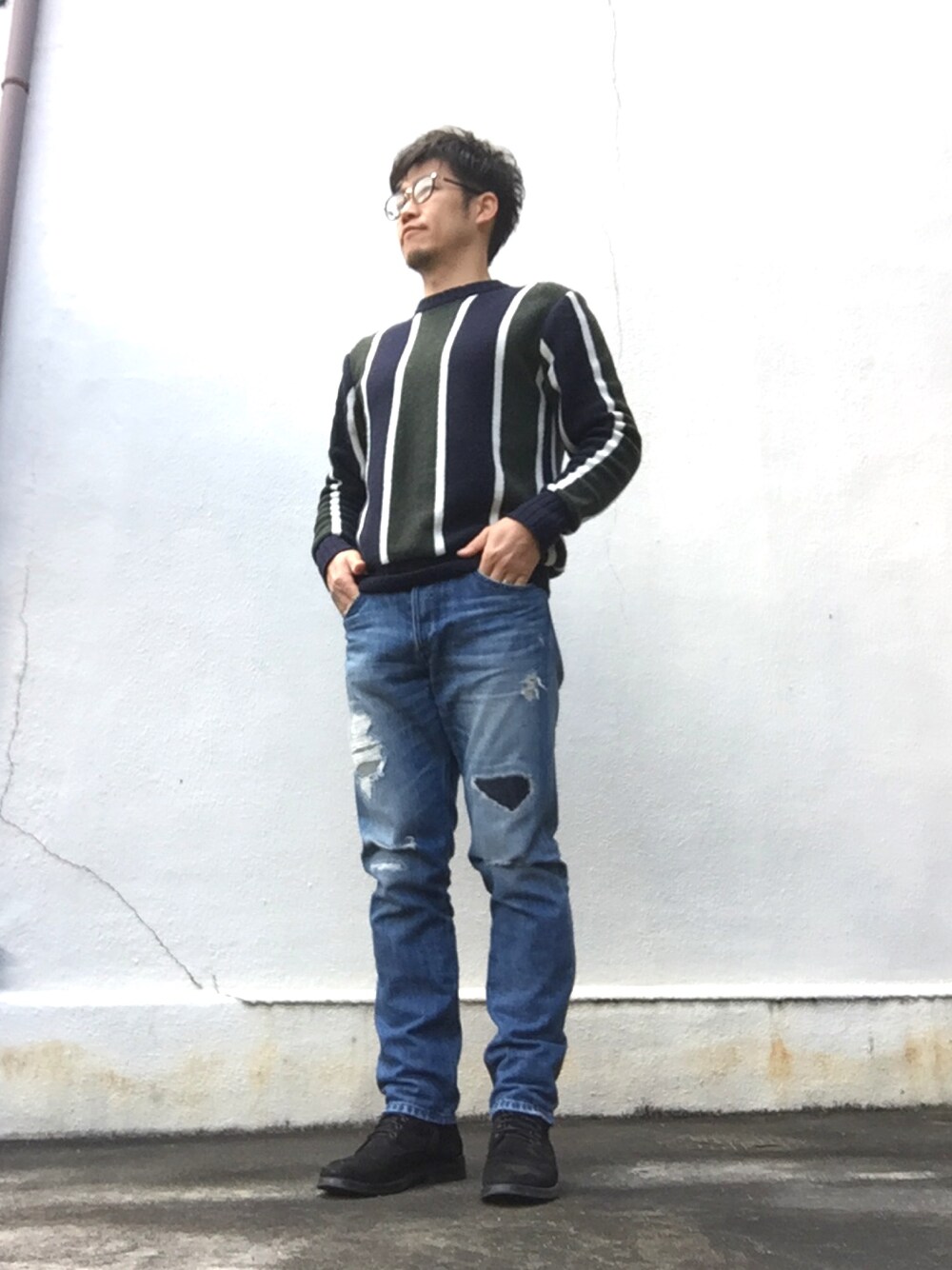 takeのニット/セーター「ウール ナイロン 80'S ストライプニット」を使ったコーディネート