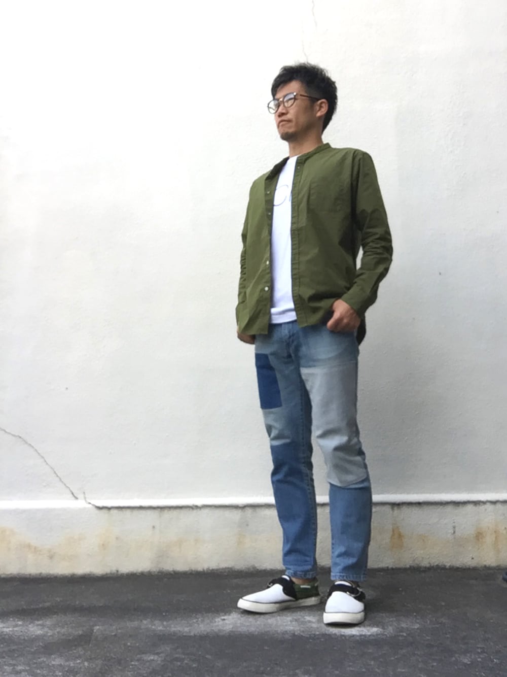 takeのシャツ/ブラウス「50ブロードストレッチバンドカラーシャツ/739504」を使ったコーディネート