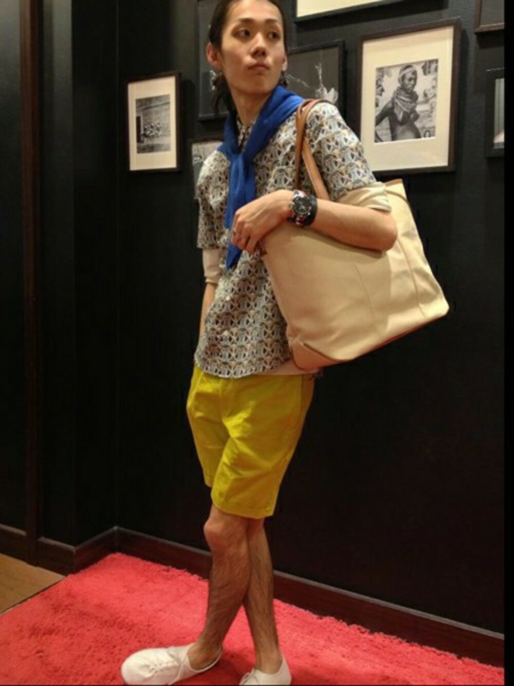 リバティ柄のシャツにニット。初夏のスタイリング。