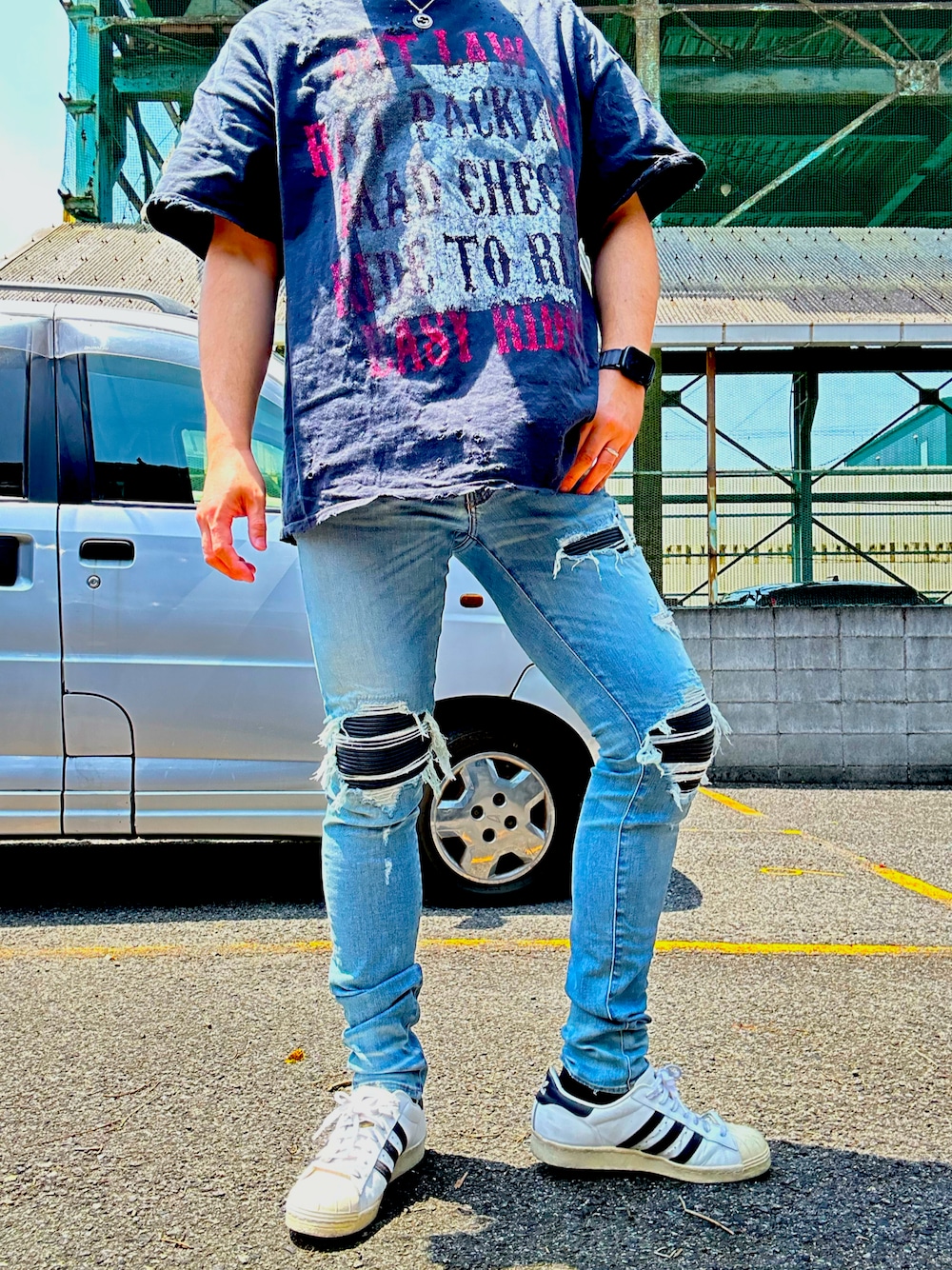 本日はローカットスニーカー、adidasです、amiriのデニムにzacvargas のTシャツです ヴィンテージに見える感じです!