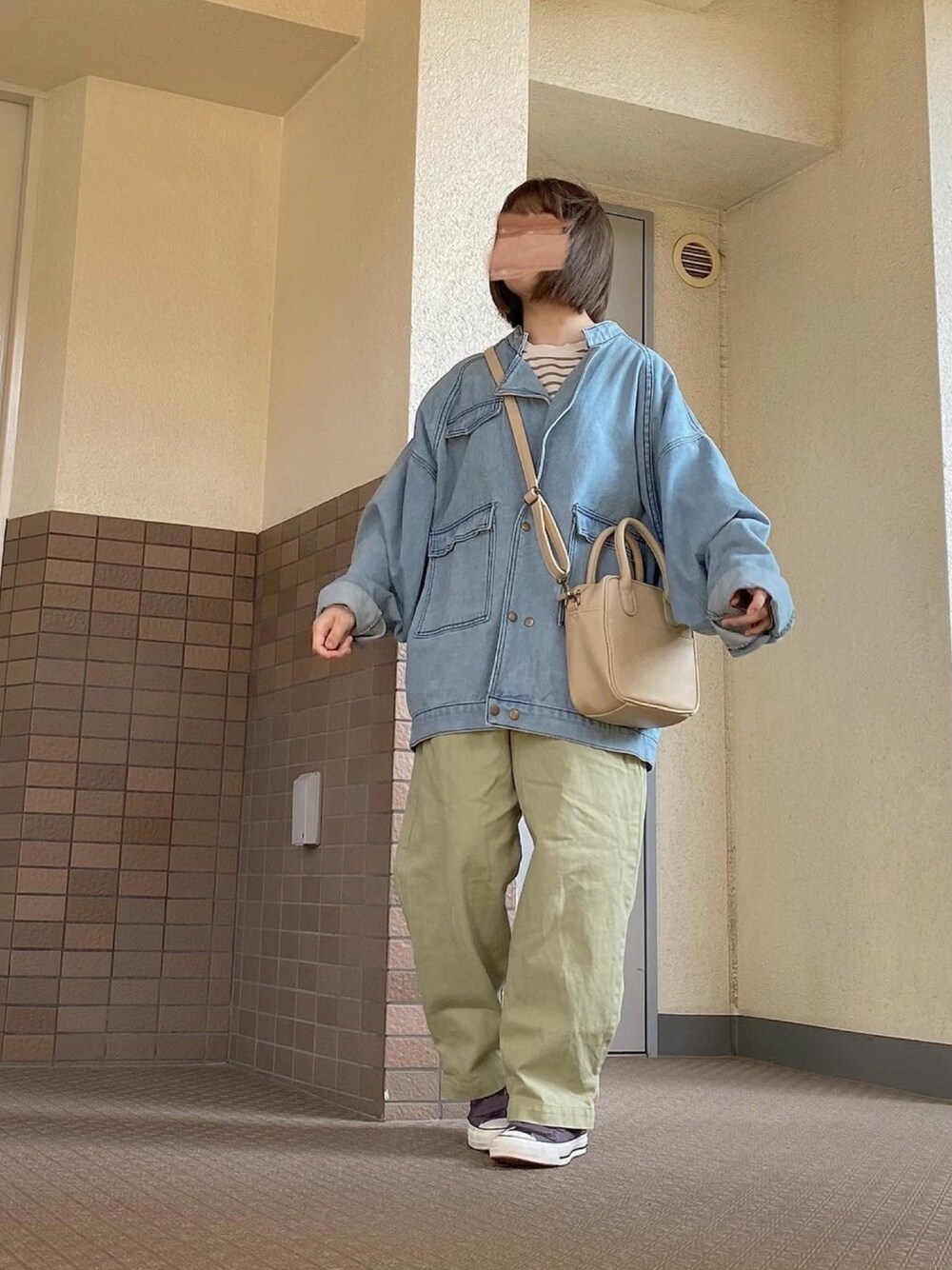 るる 🥦低身長コーデ🥬のデニムジャケット「【neos -addictive design-】ビッグシルエット ノーカラー ドルマン デニムジャケット」を使ったコーディネート