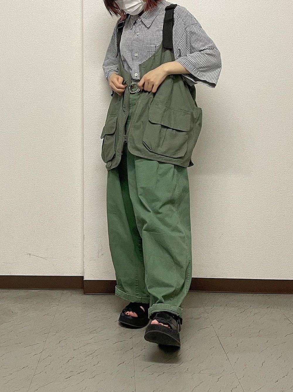 るる 🥦低身長コーデ🥬のチノパンツ「サスペンダー付き ツイルダーツ入りワイドパンツ」を使ったコーディネート