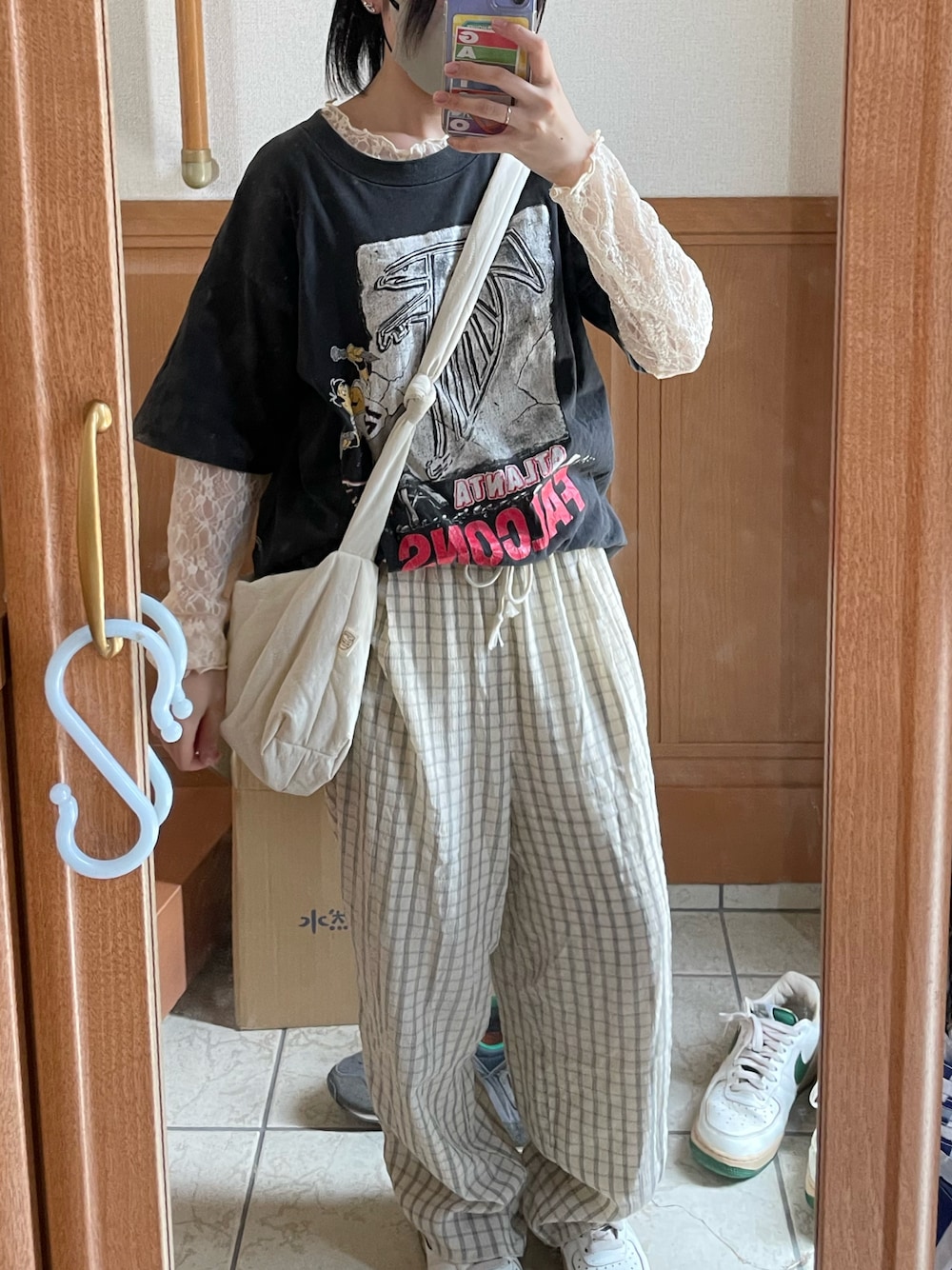 レースのインナー中に着てパンツとバッグと色合わせ🤍