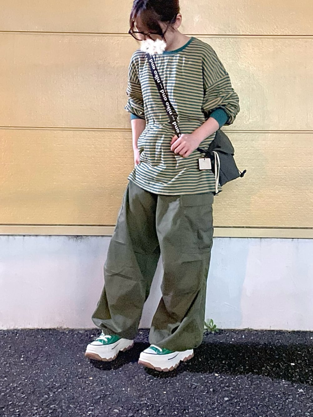 全身ミドリーー🟩 フリークスのボーダーロンTがかわいい
