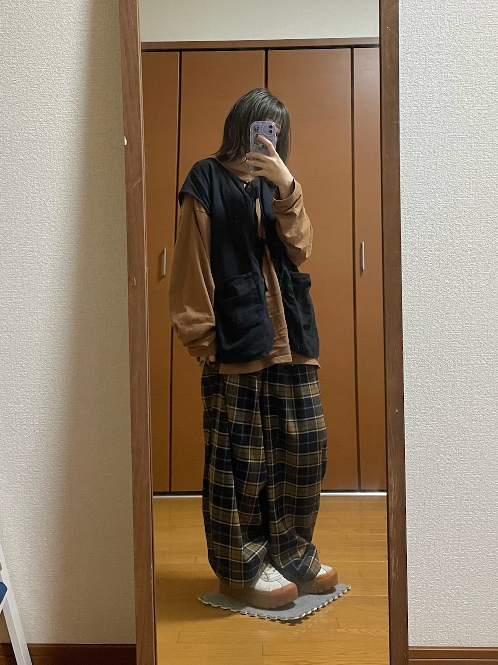 暑くなったり寒くなったり😥 寒い日だいたいこの茶色のロンT着てる🟤 エヘカのこの黒のベスト何にでも合うから使いやすい( ˙ᒡ̱˙ ®)