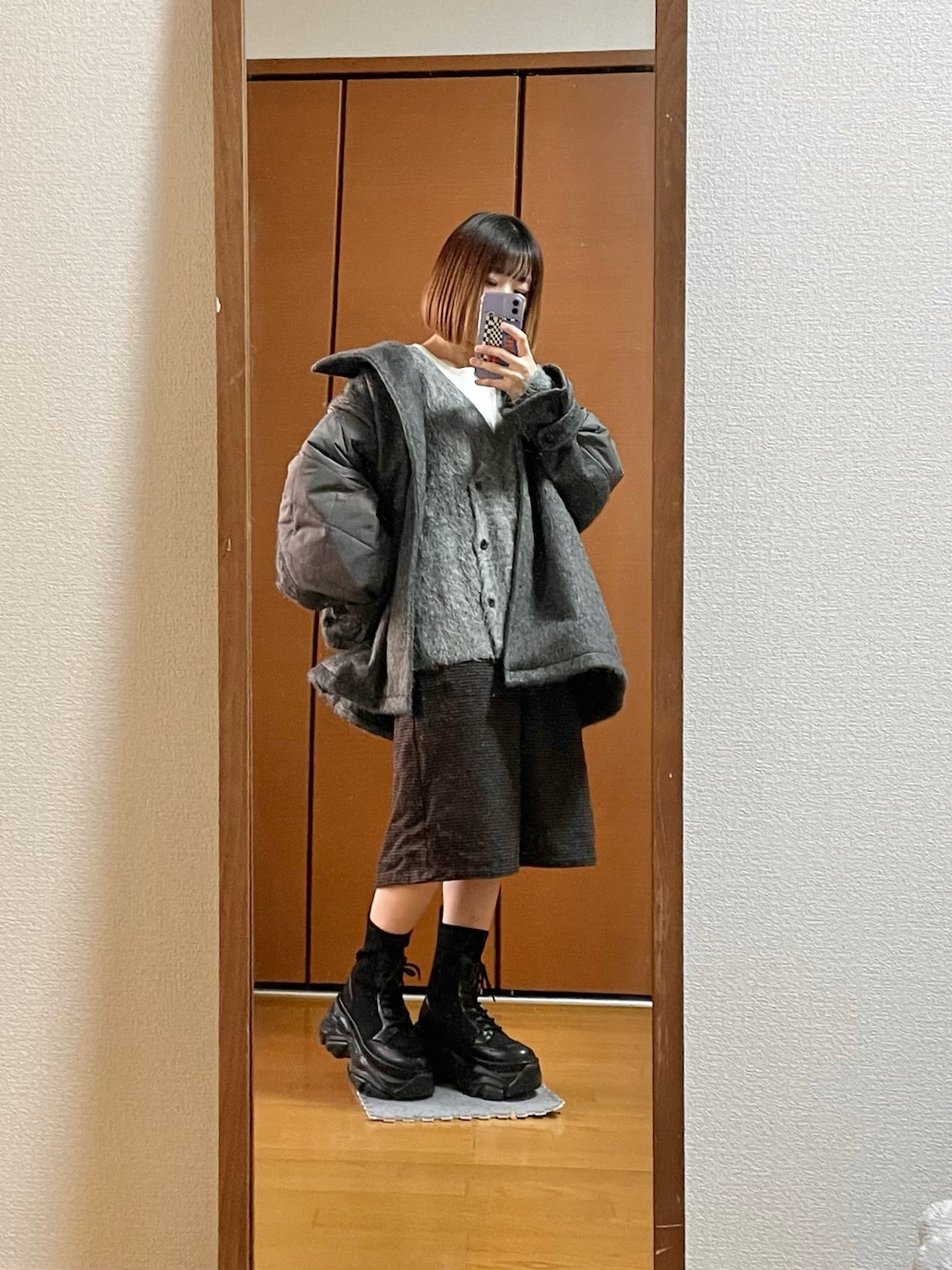 るる 🥦低身長コーデ🥬のカーディガン/ボレロ「限定展開 ダブルブレスト シャギー ニット カーディガン」を使ったコーディネート