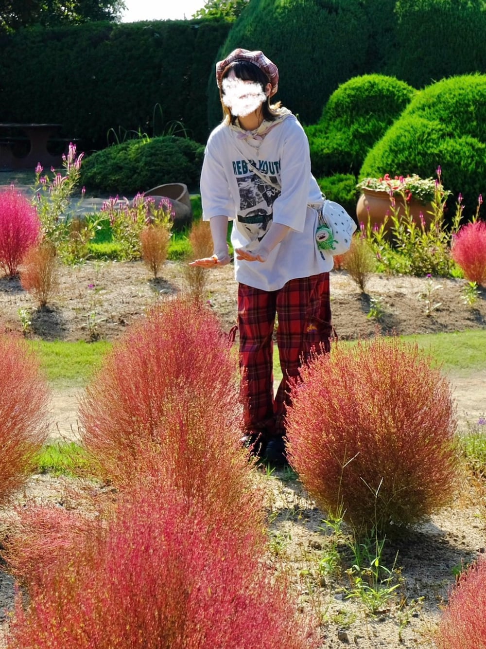 おはようございます☀️ 先週の3連休コキアを見に行きました🙋♀️ カメラで写真撮ってもらった!! 真っ赤に高揚しててモフモフしててかわいかった🍁🍂 この日は最高32度でめちゃくちゃ暑かった🥵