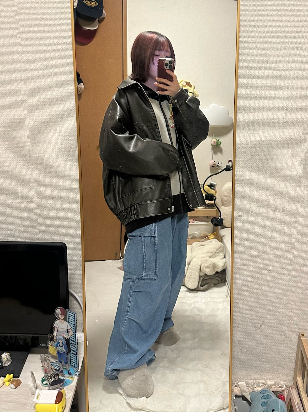 るる 🥦低身長コーデ🥬のブルゾン「ヴィンテージライクフェイクレザーBIGブルゾン」を使ったコーディネート