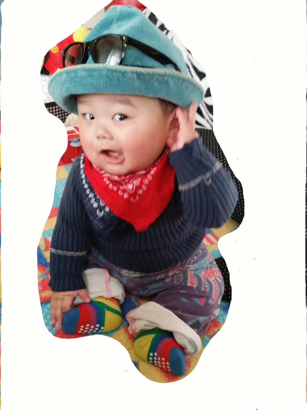 貰い物ですが Booコーデ😊 ズボンの裾長すぎて折り曲げたらカッコ悪い😅 100円ショップのバンダナをスタイのかわりにしてますw