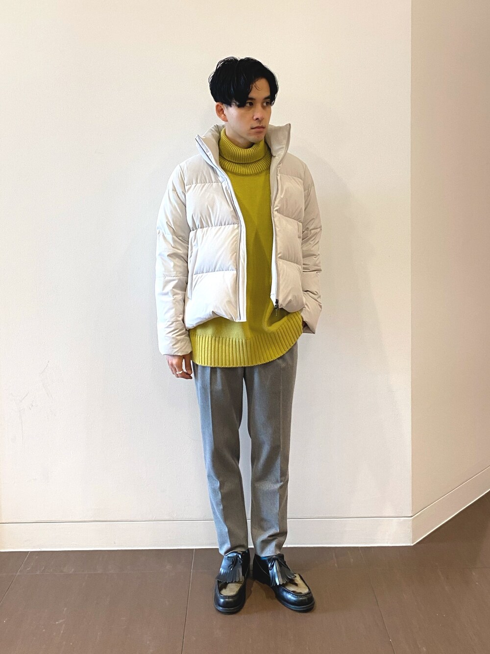先程のスタイルにトレンド感あるホワイト系のダウン。 軽快且つ洒落た冬を約束します。