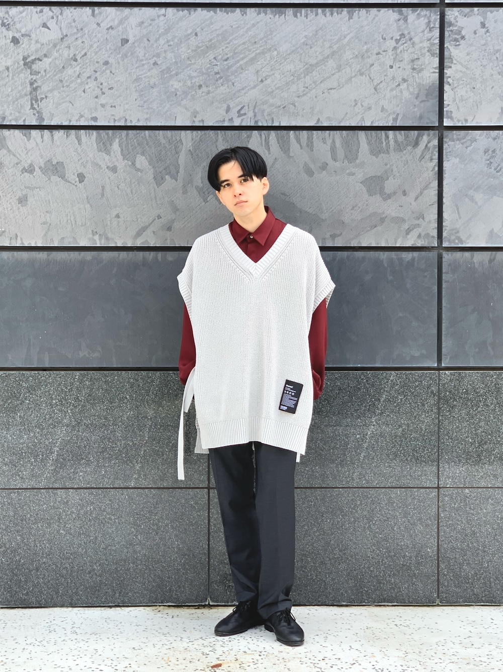 オーバーシルエットのニットベストは、 いつものスタイルに大きな変化を。 オーバーシルエットってのがポイント。