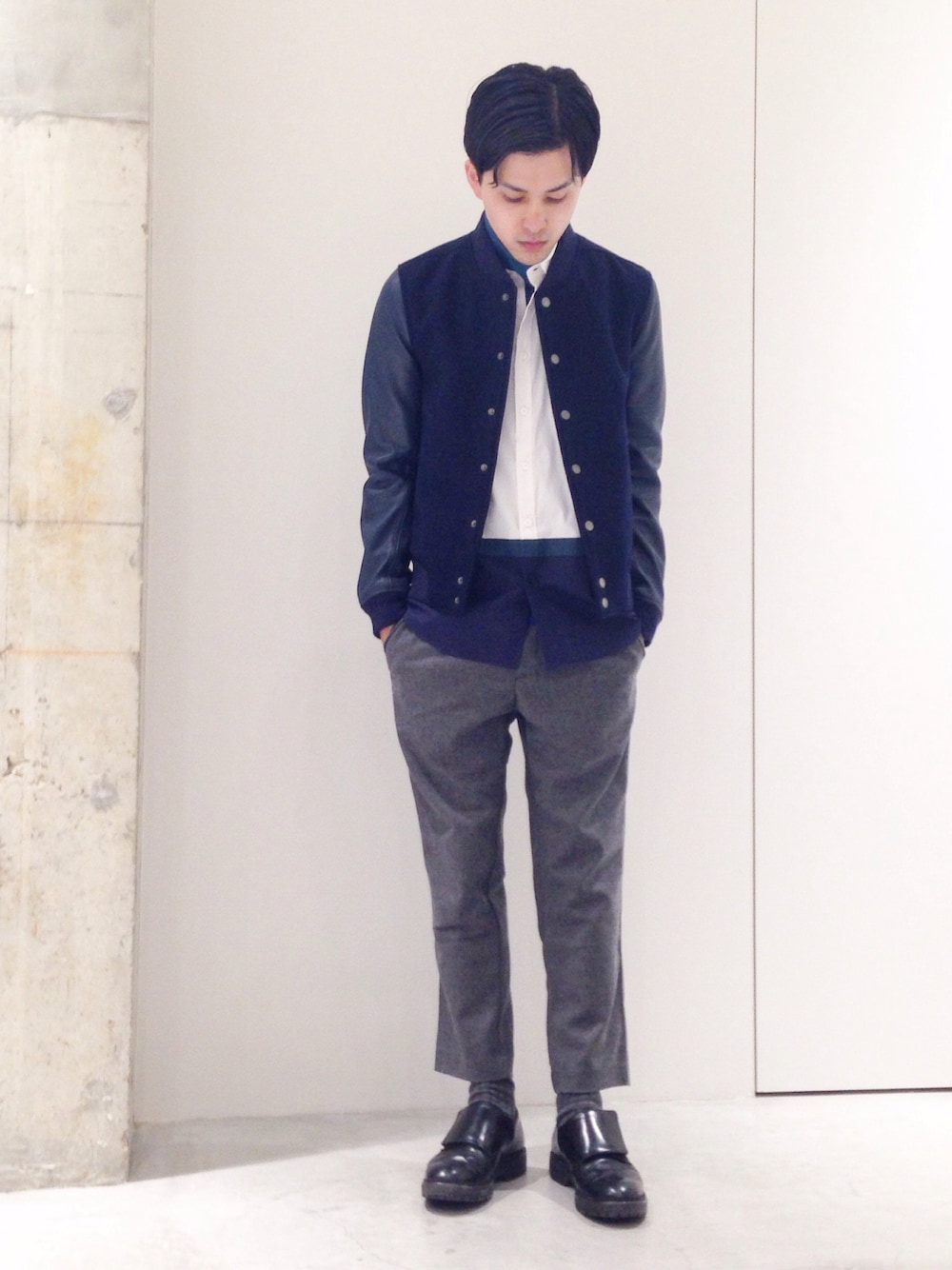 竹内 孜介のスタジャン「STUDIOUS レザー切り替えスタジャン」を使ったコーディネート