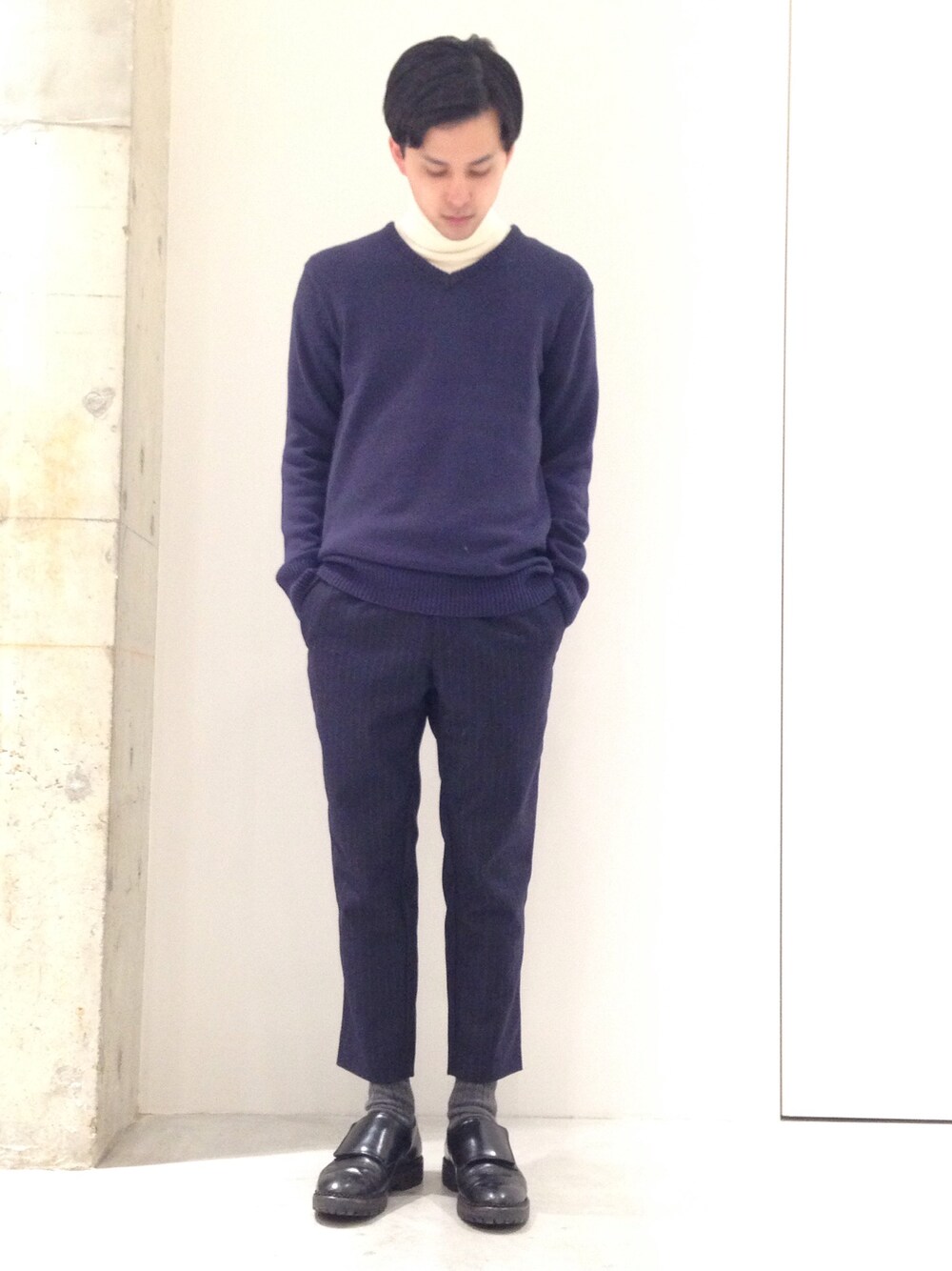 オススメスタイル。 Vネックニット、タートルニットレイヤード。 そしてワントーン。 ブラックワントーンはよく見かける。 結局、ついブラックに行き着くのは、避けがたい事実かもしれない。 少し変えたい気持ちが、もしあれば、 素材と織、網が異なるモノを合わせてみよう。 新しい自分が、 ほら、 こんにちは。