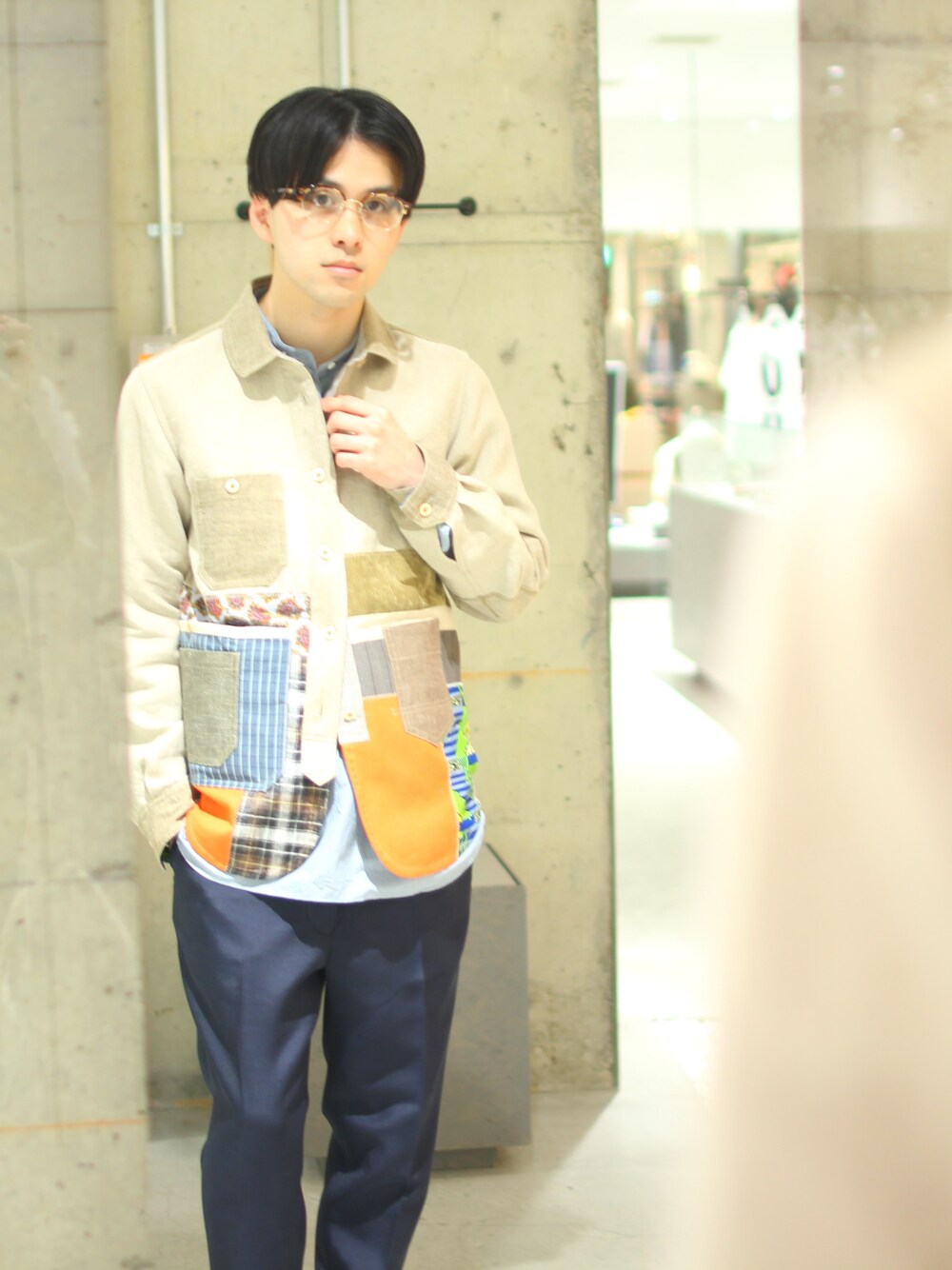 アースカラーは新しい。 ベージュなら更に新しい。 シャツはバンドカラーは引き続き気分。 新しいベージュカラーを、上品なネイビーと合わせて、 さぁ、召し上がれ。
