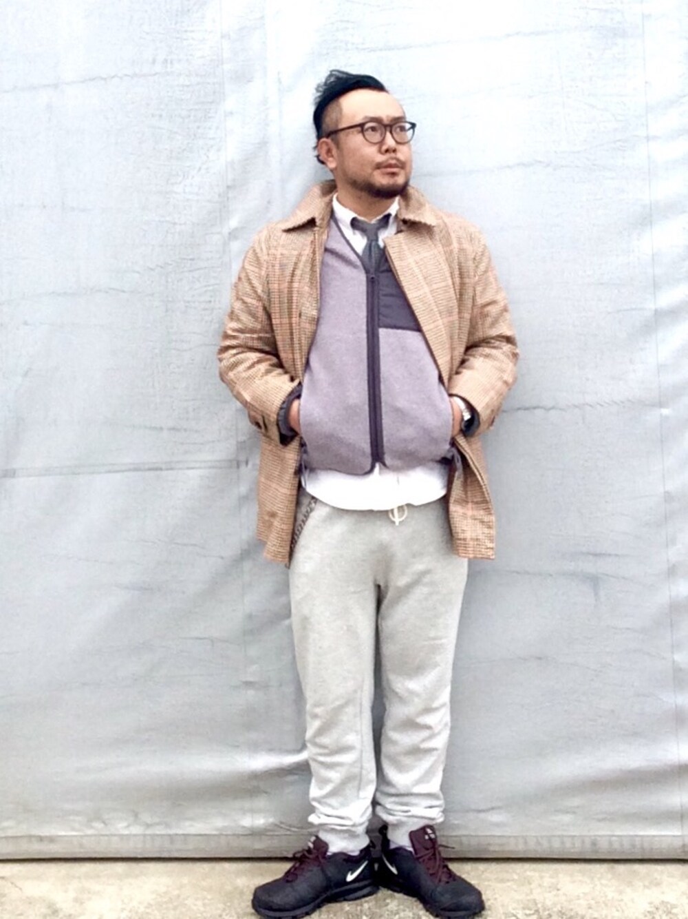 20年近く前に買った千鳥格子のステンカラーコートがいい気分。 ナイキ履きすぎ(笑)